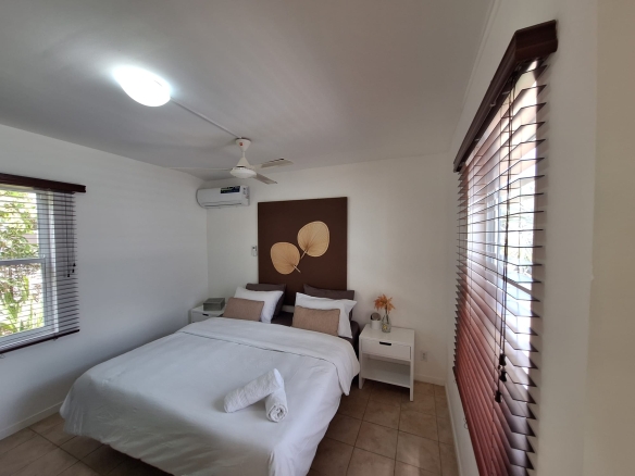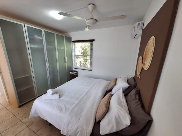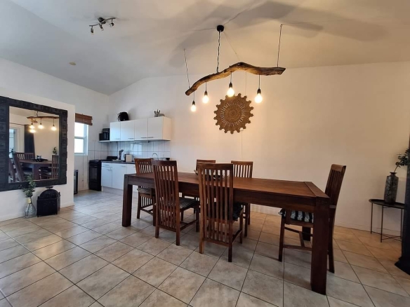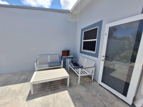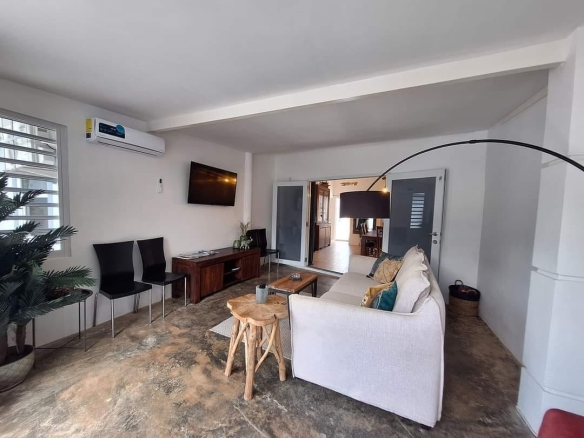 The house has three (3) bedrooms and two (2) bathrooms (incl. warm water). With an open living room, kitchen and also extra living room with airconditioning. The house also has a nice outside area with outside storage.