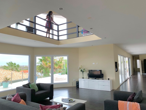 The villa (about 300m²) is built on a slope (fantastic view) and lays on a 946m² private property.
