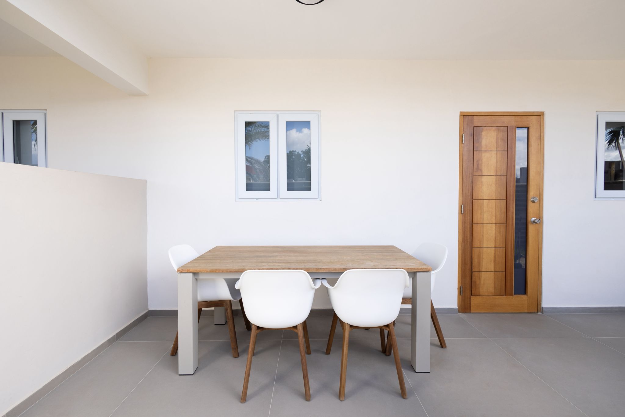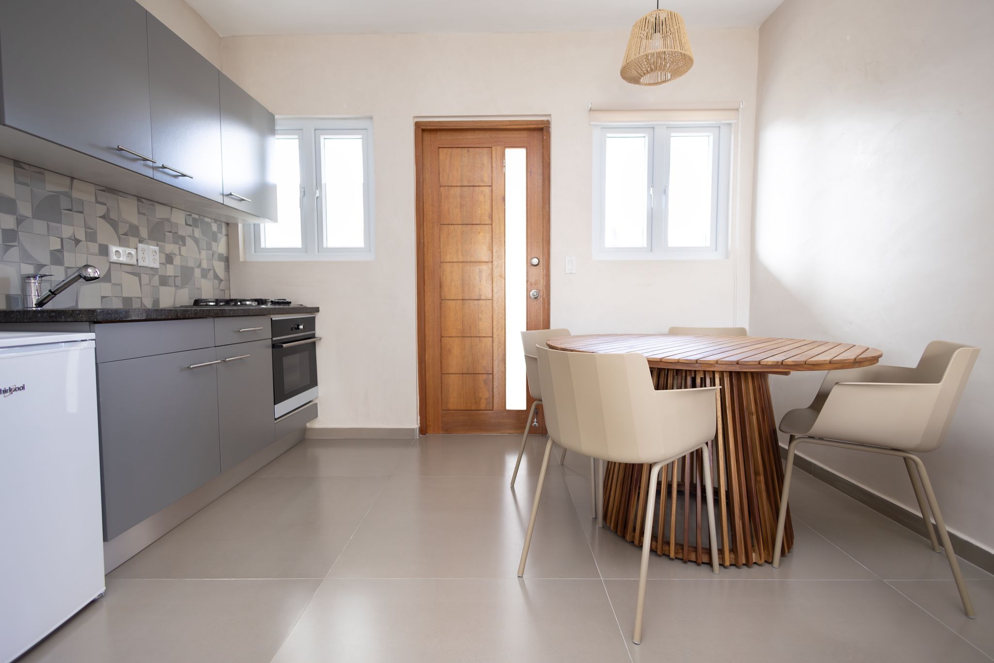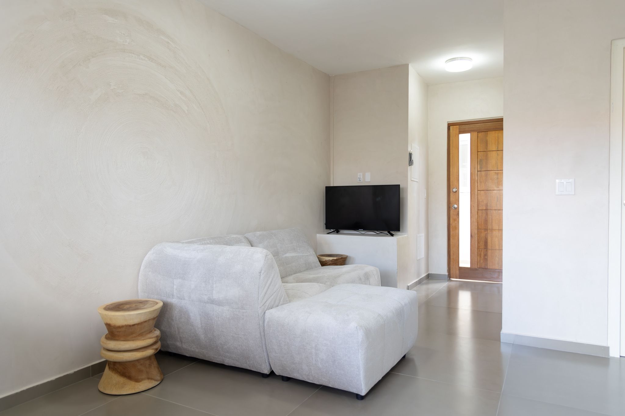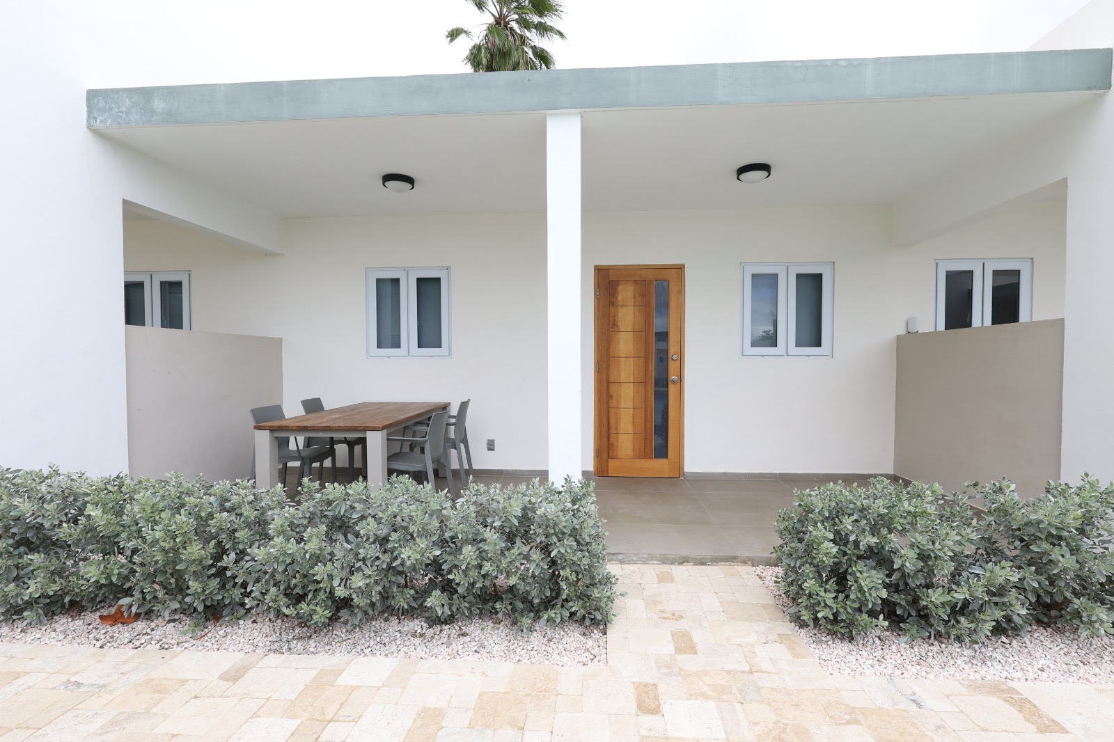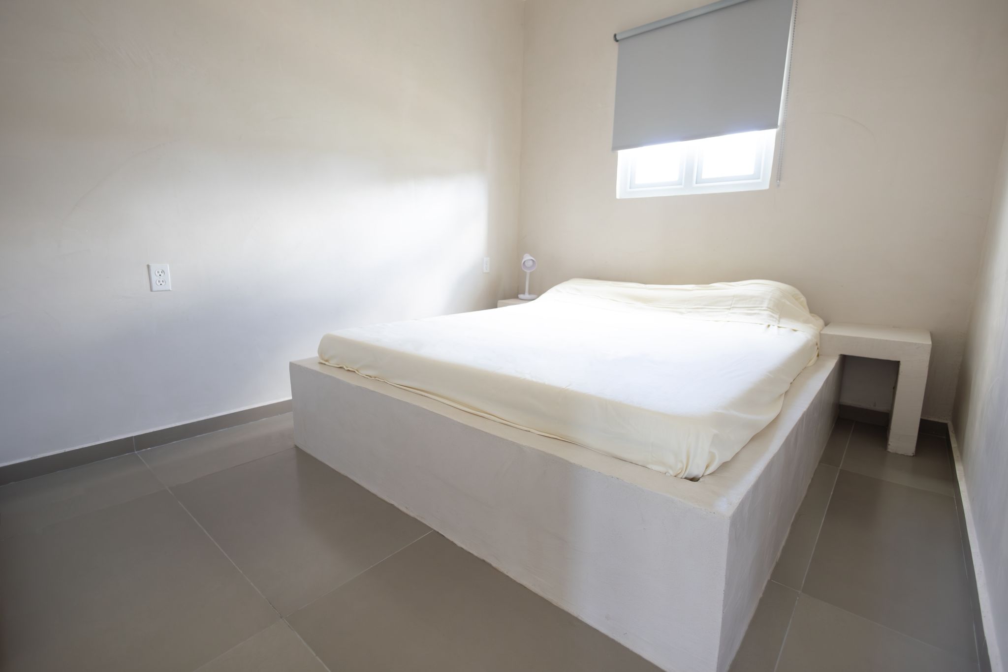 The two apartments have a modern style interior with two (2) bedrooms and one (1) bathroom. Both apartments have a concrete look, which making easy to clean. It is possible to buy the apartment(s) furnished but also possible to buy unfurnished. The two (2) apartments are also vandal-proof (hufterproof). At the moment there is Starlink Wi-Fi, which possible to buy over or possible to take a fiber optic FLOW connection (which would need to be installed).